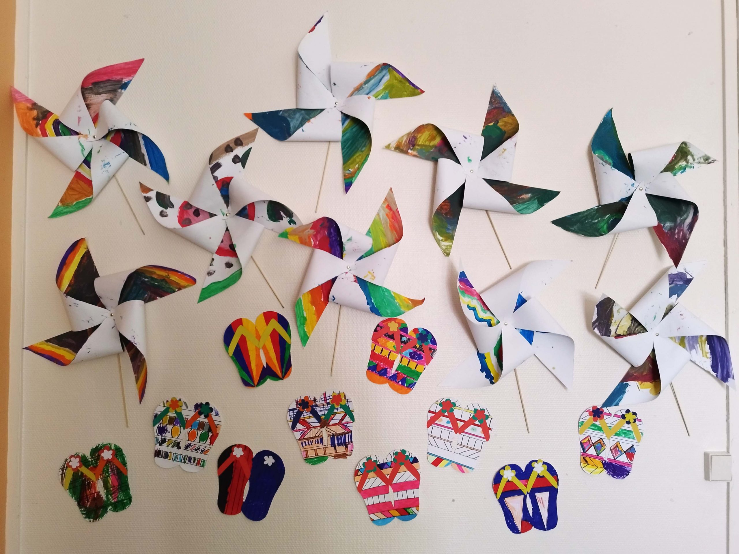 Réalisations des enfants de maternelle sur différents thèmes : les fleurs, l’été…