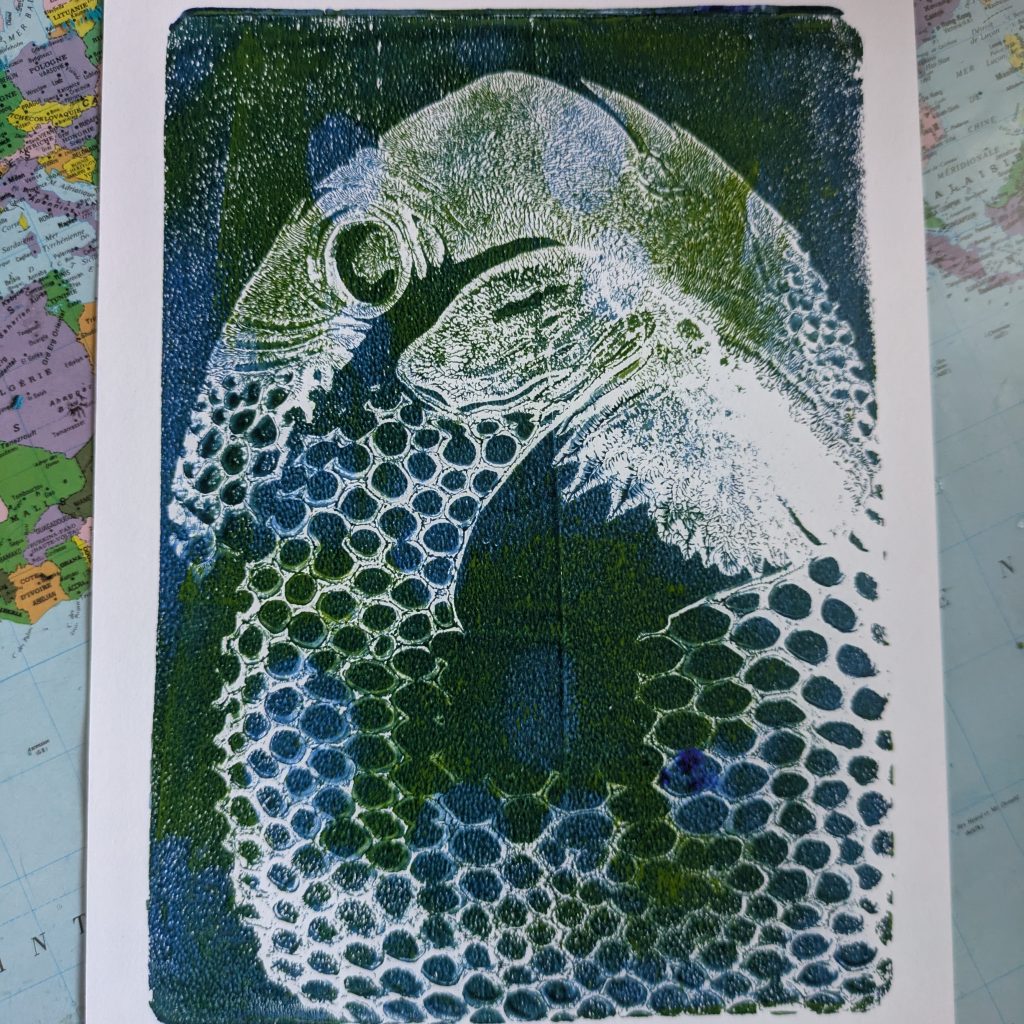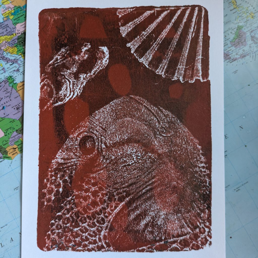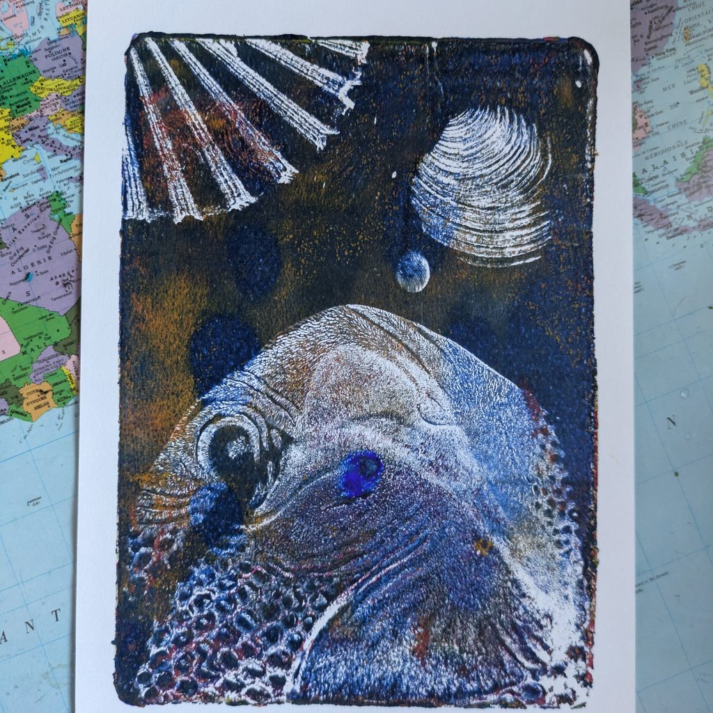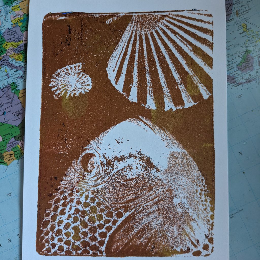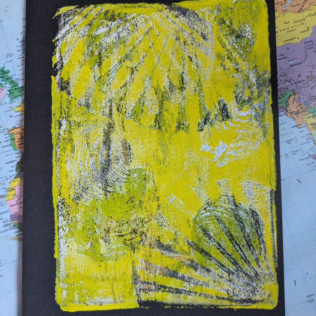 Impressions à l'aide d'une Gelli Plate (plaque souple utilisable à l'infini permettant la création de monotypes).